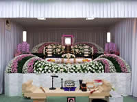 仏式葬 こちらで紹介する施行例は、いわゆる普通のご友人や会社関係、町会関係など、故人と縁のあった方々のもご会葬をいただいたお葬式の事例です。 家族葬に比べると、式場が大きくなった分の装飾や、受付設備という施行にかかる部分と通夜ぶるまいの料理やお返し物など接待面で費用が上がっています。 お返し物は、とりあえず簡単な物(粗供養品)をお返しするケースと、お香典返しを当日行ってしまうケースがあります。 当日返しの場合、一見費用は高くなってしまいますが、忌明けにお返しをする事を考えると、トータルでは節約になります。